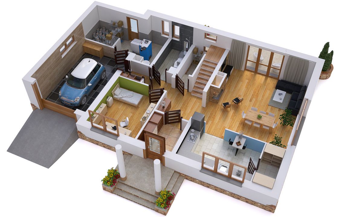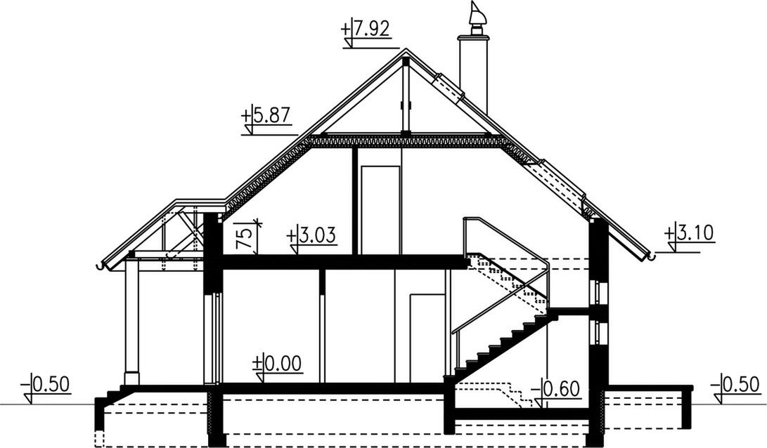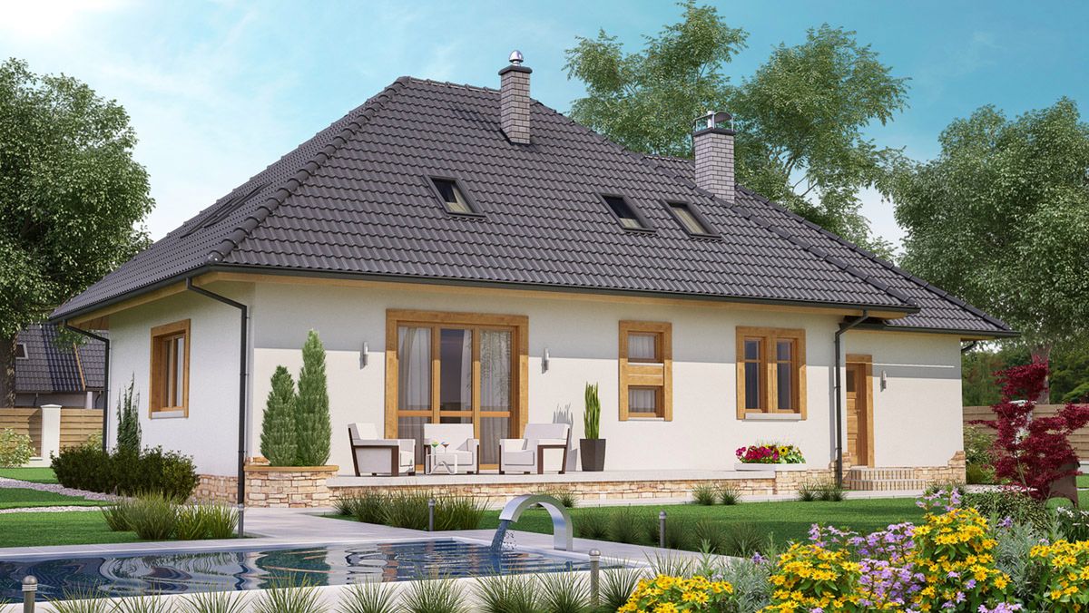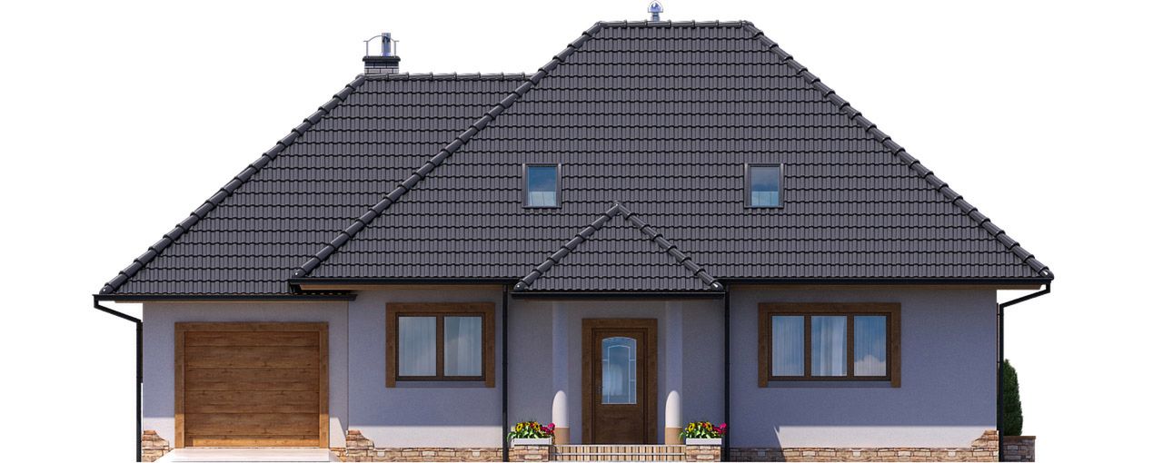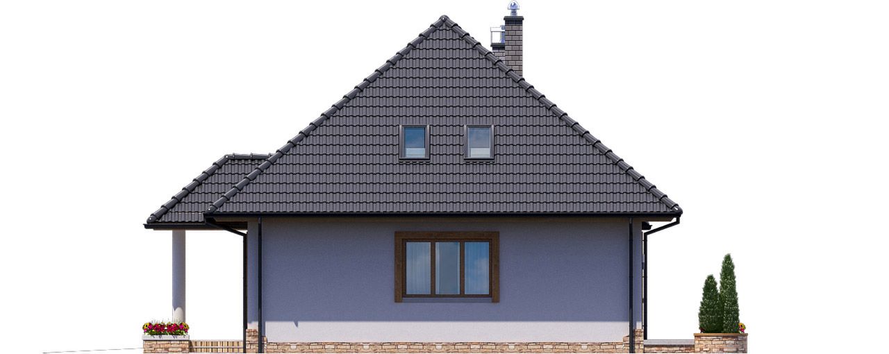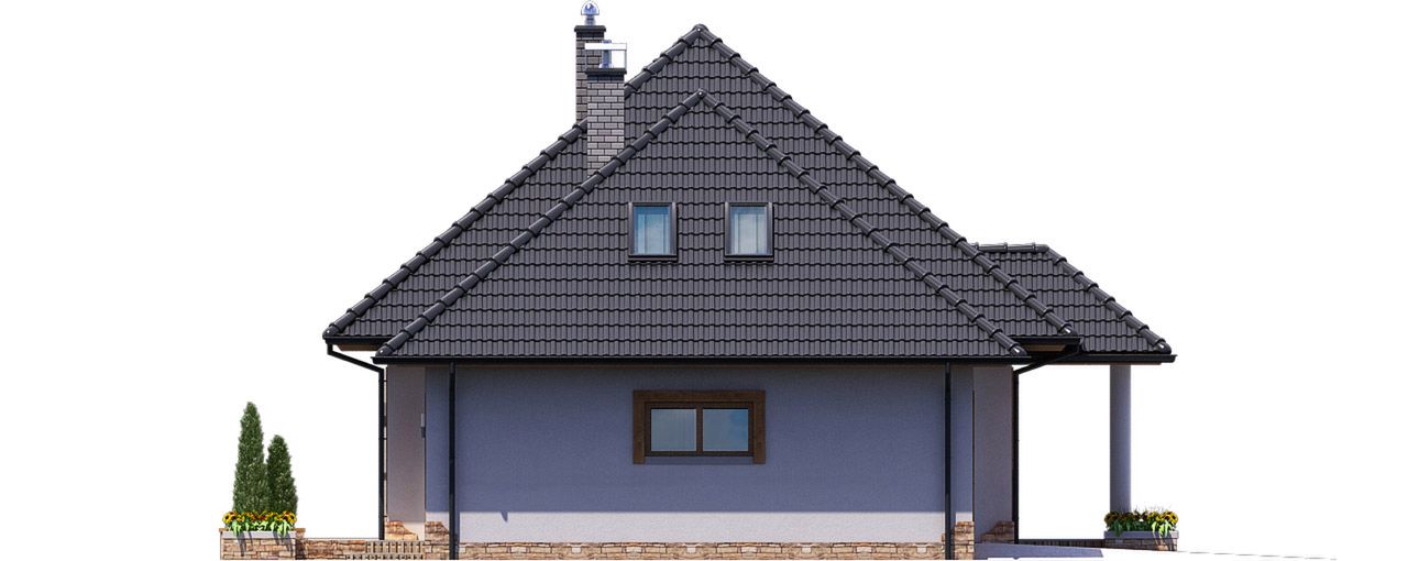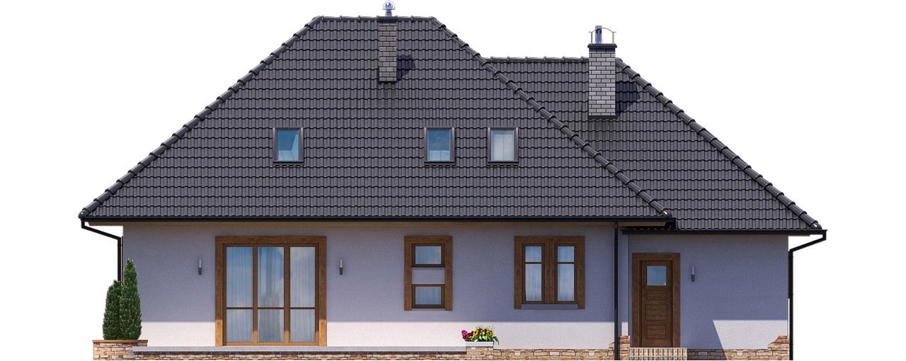 Graficzne opracowanie rzutów poglądowych widocznych na karcie projektu zostało wykonane przez Extradom.pl. Prezentowane przez Extradom.pl wizualizacje wykonane zostały przez autora projektu i należy poczytywać je jedynie za przykład i propozycję wykończenia, wizję architektoniczną autora projektu. Ostateczne wykończenie budynku może nastąpić na wiele sposobów. Szczegółowe rozwiązania zastosowane w oferowanej dokumentacji - w tym również ilość, lokalizacje i wygląd okien, drzwi, kominów - mogą w niewielkim stopniu różnić się od prezentowanej wizualizacji budynku.