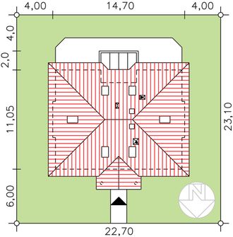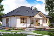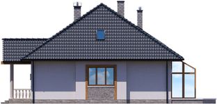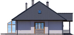 Graficzne opracowanie rzutów poglądowych widocznych na karcie projektu zostało wykonane przez Extradom.pl. Prezentowane przez Extradom.pl wizualizacje wykonane zostały przez autora projektu i należy poczytywać je jedynie za przykład i propozycję wykończenia, wizję architektoniczną autora projektu. Ostateczne wykończenie budynku może nastąpić na wiele sposobów. Szczegółowe rozwiązania zastosowane w oferowanej dokumentacji - w tym również ilość, lokalizacje i wygląd okien, drzwi, kominów - mogą w niewielkim stopniu różnić się od prezentowanej wizualizacji budynku.