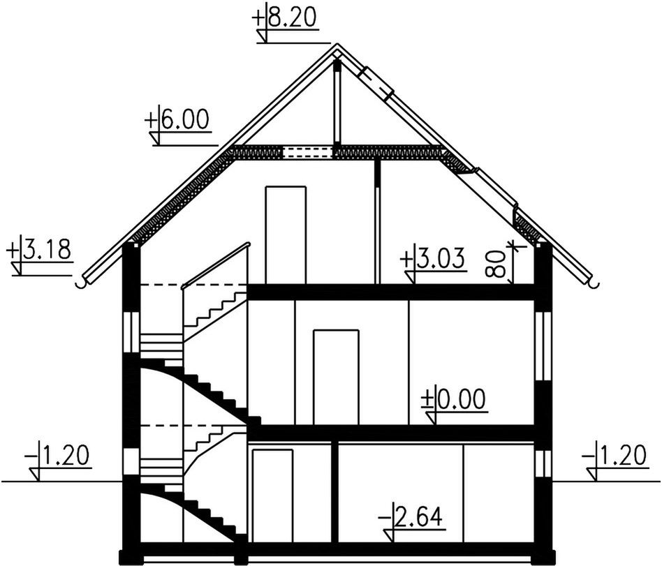 Budynek zaprojektowano w technologii tradycyjnej: ściany zewnętrzne nadziemia murowane z bloczków z betonu komórkowego z lekkim dociepleniem zewnętrznym, ściany wewnętrzne nośne murowane z ceramicznych pustaków szczelinowych, ściany podpiwniczenia murowane z bloczków z betonu keramzytowego. Stropy prefabrykowane gęstożebrowe. Ławy fundamentowe żelbetowe. Dach drewniany krokwiowo – płatwiowy, pokrycie – dachówka cementowa, ceramiczna lub blacha dachówkowa.