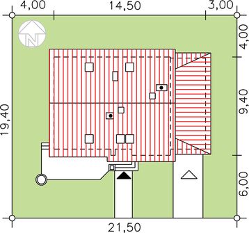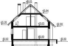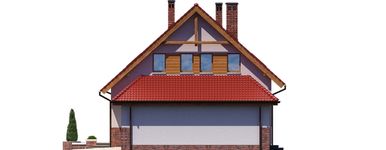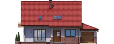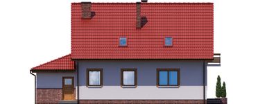 Graficzne opracowanie rzutów poglądowych widocznych na karcie projektu zostało wykonane przez Extradom.pl. Prezentowane przez Extradom.pl wizualizacje wykonane zostały przez autora projektu i należy poczytywać je jedynie za przykład i propozycję wykończenia, wizję architektoniczną autora projektu. Ostateczne wykończenie budynku może nastąpić na wiele sposobów. Szczegółowe rozwiązania zastosowane w oferowanej dokumentacji - w tym również ilość, lokalizacje i wygląd okien, drzwi, kominów - mogą w niewielkim stopniu różnić się od prezentowanej wizualizacji budynku.