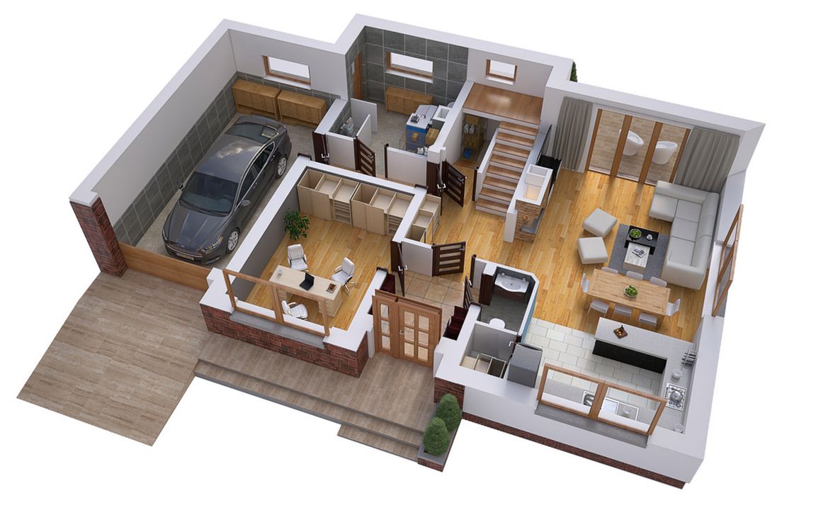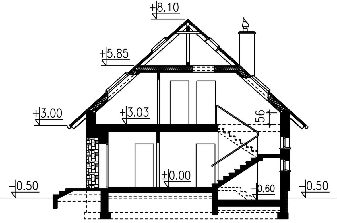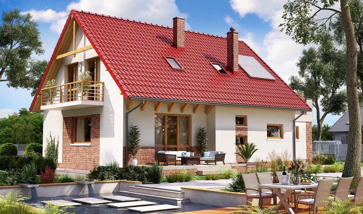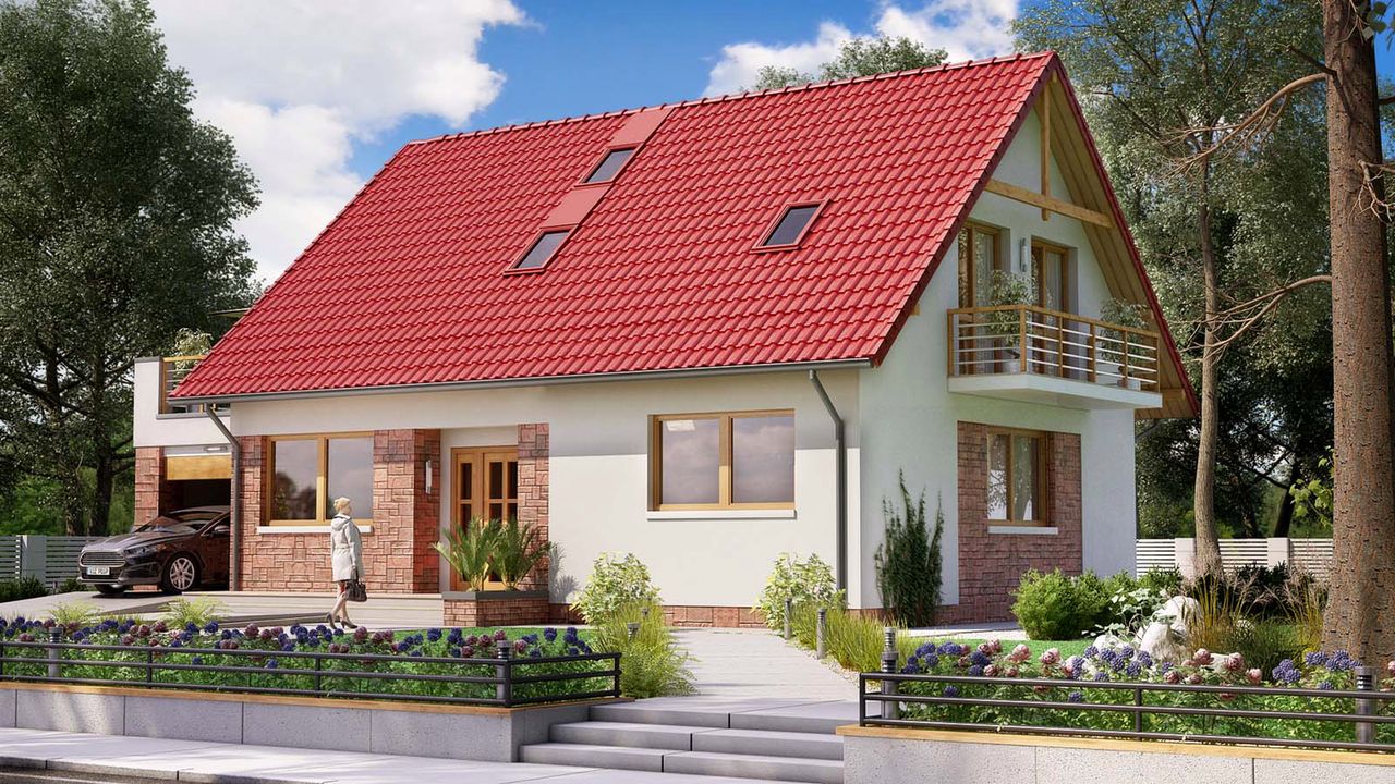 Graficzne opracowanie rzutów poglądowych widocznych na karcie projektu zostało wykonane przez Extradom.pl. Prezentowane przez Extradom.pl wizualizacje wykonane zostały przez autora projektu i należy poczytywać je jedynie za przykład i propozycję wykończenia, wizję architektoniczną autora projektu. Ostateczne wykończenie budynku może nastąpić na wiele sposobów. Szczegółowe rozwiązania zastosowane w oferowanej dokumentacji - w tym również ilość, lokalizacje i wygląd okien, drzwi, kominów - mogą w niewielkim stopniu różnić się od prezentowanej wizualizacji budynku.