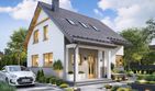 Graficzne opracowanie rzutów poglądowych widocznych na karcie projektu zostało wykonane przez Extradom.pl. Prezentowane przez Extradom.pl wizualizacje wykonane zostały przez autora projektu i należy poczytywać je jedynie za przykład i propozycję wykończenia, wizję architektoniczną autora projektu. Ostateczne wykończenie budynku może nastąpić na wiele sposobów. Szczegółowe rozwiązania zastosowane w oferowanej dokumentacji - w tym również ilość, lokalizacje i wygląd okien, drzwi, kominów - mogą w niewielkim stopniu różnić się od prezentowanej wizualizacji budynku.