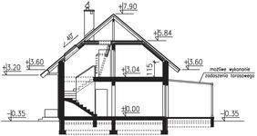 Graficzne opracowanie rzutów poglądowych widocznych na karcie projektu zostało wykonane przez Extradom.pl. Prezentowane przez Extradom.pl wizualizacje wykonane zostały przez autora projektu i należy poczytywać je jedynie za przykład i propozycję wykończenia, wizję architektoniczną autora projektu. Ostateczne wykończenie budynku może nastąpić na wiele sposobów. Szczegółowe rozwiązania zastosowane w oferowanej dokumentacji - w tym również ilość, lokalizacje i wygląd okien, drzwi, kominów - mogą w niewielkim stopniu różnić się od prezentowanej wizualizacji budynku.