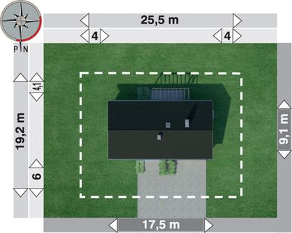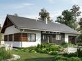 Graficzne opracowanie rzutów poglądowych widocznych na karcie projektu zostało wykonane przez Extradom.pl. Prezentowane przez Extradom.pl wizualizacje wykonane zostały przez autora projektu i należy poczytywać je jedynie za przykład i propozycję wykończenia, wizję architektoniczną autora projektu. Ostateczne wykończenie budynku może nastąpić na wiele sposobów. Szczegółowe rozwiązania zastosowane w oferowanej dokumentacji - w tym również ilość, lokalizacje i wygląd okien, drzwi, kominów - mogą w niewielkim stopniu różnić się od prezentowanej wizualizacji budynku.