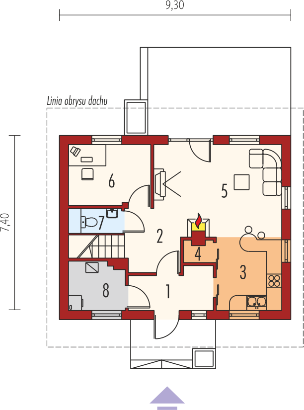 Graficzne opracowanie rzutów poglądowych widocznych na karcie projektu zostało wykonane przez Extradom.pl. Prezentowane przez Extradom.pl wizualizacje wykonane zostały przez autora projektu i należy poczytywać je jedynie za przykład i propozycję wykończenia, wizję architektoniczną autora projektu. Ostateczne wykończenie budynku może nastąpić na wiele sposobów. Szczegółowe rozwiązania zastosowane w oferowanej dokumentacji - w tym również ilość, lokalizacje i wygląd okien, drzwi, kominów - mogą w niewielkim stopniu różnić się od prezentowanej wizualizacji budynku.