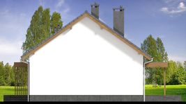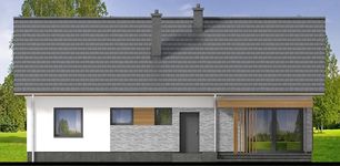 Graficzne opracowanie rzutów poglądowych widocznych na karcie projektu zostało wykonane przez Extradom.pl. Prezentowane przez Extradom.pl wizualizacje wykonane zostały przez autora projektu i należy poczytywać je jedynie za przykład i propozycję wykończenia, wizję architektoniczną autora projektu. Ostateczne wykończenie budynku może nastąpić na wiele sposobów. Szczegółowe rozwiązania zastosowane w oferowanej dokumentacji - w tym również ilość, lokalizacje i wygląd okien, drzwi, kominów - mogą w niewielkim stopniu różnić się od prezentowanej wizualizacji budynku.