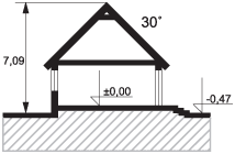 Fundamenty betonowe z ociepleniem. Ściany konstrukcyjne zewnętrzne z bloczków ceramicznych z ociepleniem. Ściany konstrukcyjne wewnętrzne z pustaków ceramicznych. Ściany działowe z cegły kratówki lub z płyt gipsowo-kartonowych. Strop monolityczny, żelbetowy. Konstrukcja dachu drewniana, płatwiowo-krokwiowa. Pokrycie dachu dachówką ceramiczną.