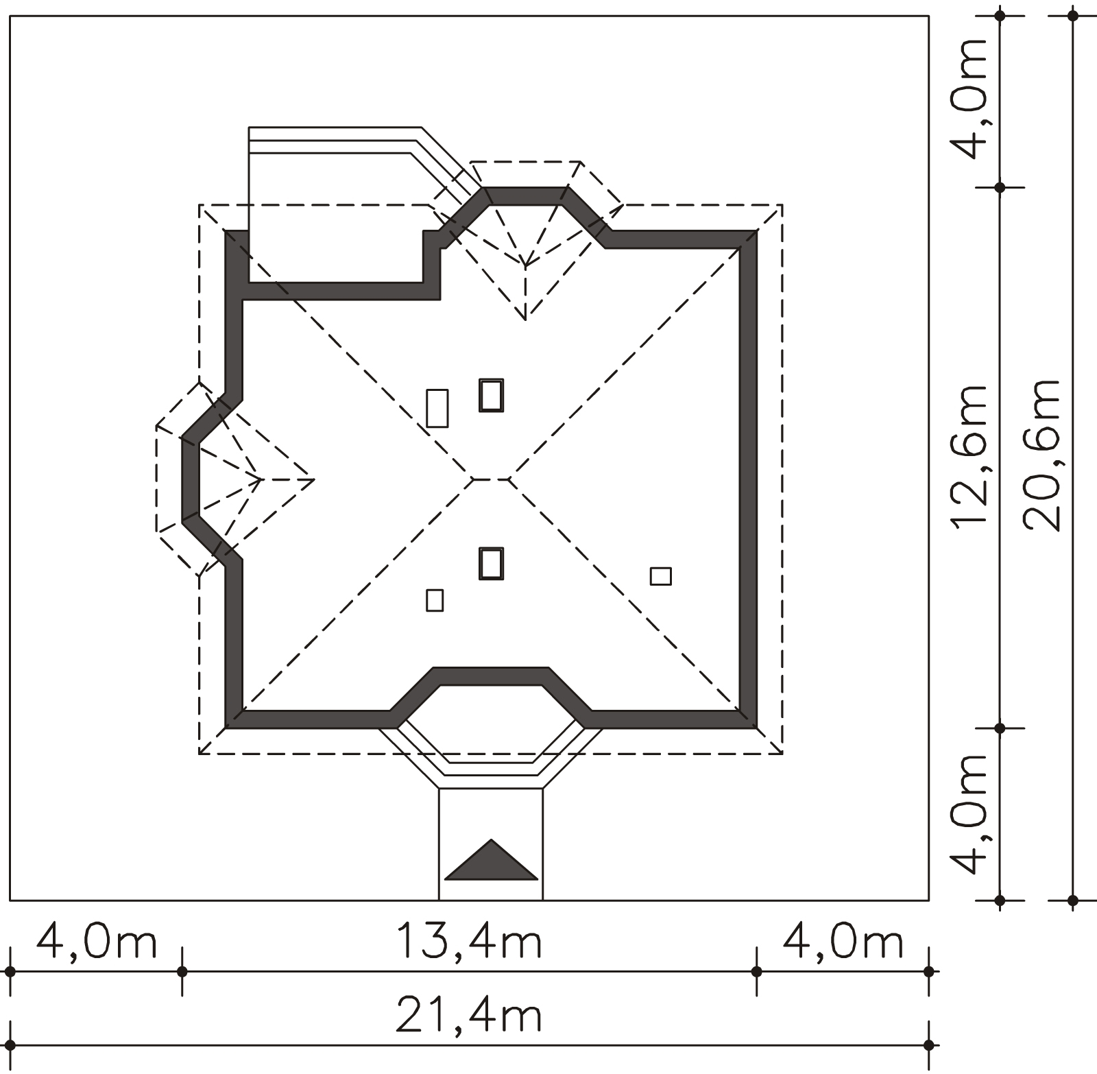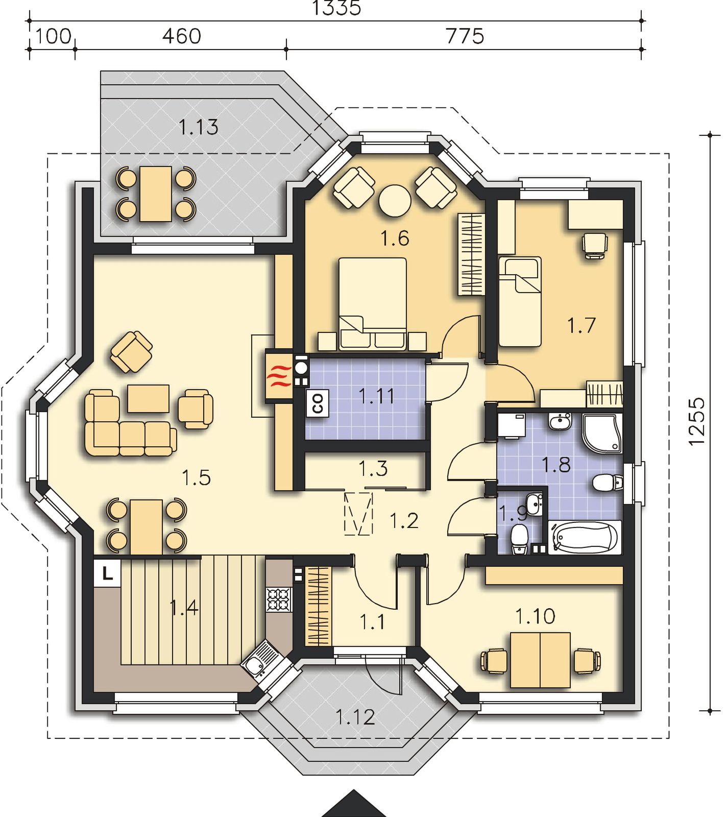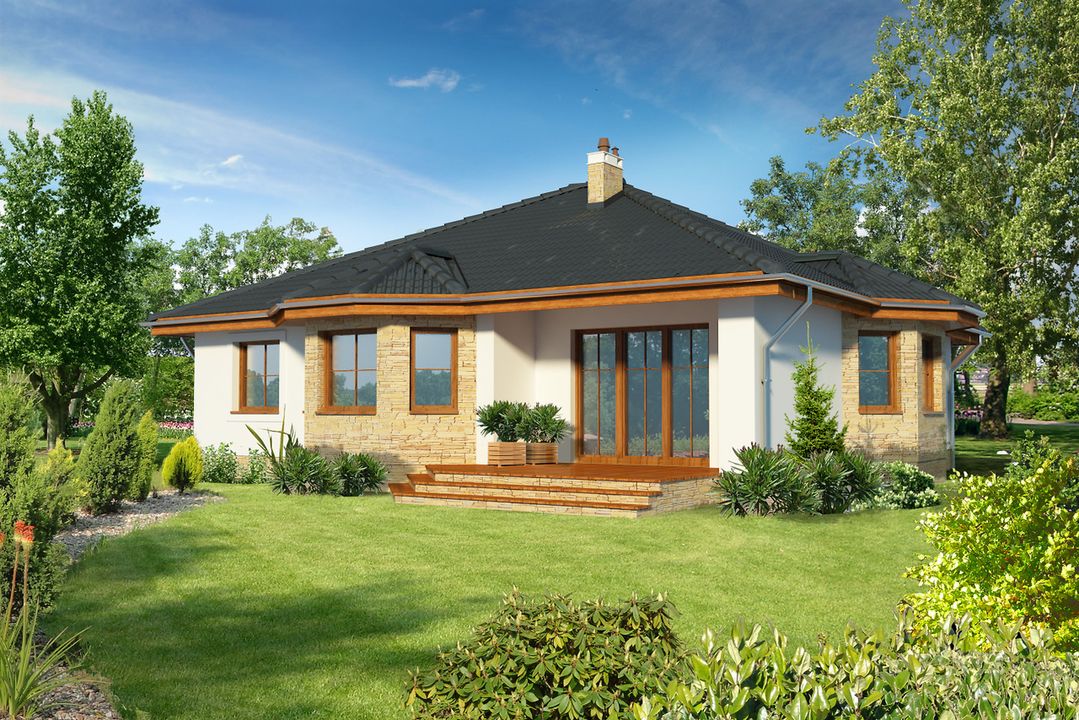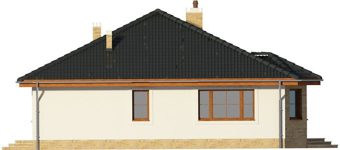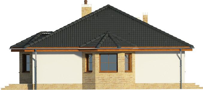 Graficzne opracowanie rzutów poglądowych widocznych na karcie projektu zostało wykonane przez Extradom.pl. Prezentowane przez Extradom.pl wizualizacje wykonane zostały przez autora projektu i należy poczytywać je jedynie za przykład i propozycję wykończenia, wizję architektoniczną autora projektu. Ostateczne wykończenie budynku może nastąpić na wiele sposobów. Szczegółowe rozwiązania zastosowane w oferowanej dokumentacji - w tym również ilość, lokalizacje i wygląd okien, drzwi, kominów - mogą w niewielkim stopniu różnić się od prezentowanej wizualizacji budynku.