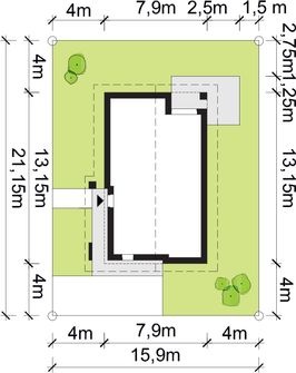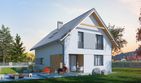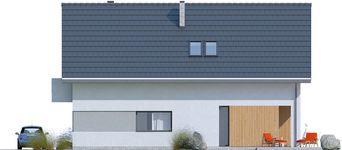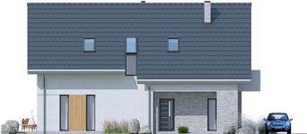 Graficzne opracowanie rzutów poglądowych widocznych na karcie projektu zostało wykonane przez Extradom.pl. Prezentowane przez Extradom.pl wizualizacje wykonane zostały przez autora projektu i należy poczytywać je jedynie za przykład i propozycję wykończenia, wizję architektoniczną autora projektu. Ostateczne wykończenie budynku może nastąpić na wiele sposobów. Szczegółowe rozwiązania zastosowane w oferowanej dokumentacji - w tym również ilość, lokalizacje i wygląd okien, drzwi, kominów - mogą w niewielkim stopniu różnić się od prezentowanej wizualizacji budynku.