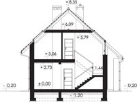 Ściany zewnętrzne: pustak ceramiczny LEIER o gr. 25cm + styropian Termo Organika o gr. 20cm + tynk. Schody: płytowe, żelbetowe, monolityczne, dwubiegowe ze spocznikiem. Strop: płyta żelbetowa monolityczna. Ściana kolankowa: słupki ściany kolanowej monolityczne, żelbetowe, wysokość 150 cm. Dach: dwuspadowy, konstrukcja ddrewniana, pokryty dachówką ceramiczną lub betonową. Źródło ciepła: kocioł gazowy i kominek z płaszczem wodnym na biomasę. Pomieszczenie gospodarcze spełnia wymagania kotłowni na paliwo stałe, w związku z czym na etapie adaptacji istnieje możliwość zmiany sposobu ogrzewania. Wentylacja: grawitacyjna. Stolarka okienna i drzwiowa: okna i drzwi PVC, rolety zewnętrzne.