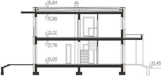 Fundamenty - rozwiązanie o podwyższonej izolacji termicznej. Ściany zewnętrzne - Bloczek silikatowy 24 cm + styropian 20 cm. Strop - gęstożebrowy. Dach - stropodach żelbetowy. Ogrzewanie - c.o. grzejnikowe + c.w.u. - kocioł gazowy. Wentylacja - rekuperacja.