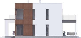 Fundamenty - płyta fundamentowa. Ściany zewnętrzne - Bloczek silikatowy 24 cm + styropian 20 cm. Strop - gęstożebrowy. Dach - stropodach żelbetowy. Ogrzewanie - c.o. podłogowe + c.w.u. - kocioł gazowy Ogrzewanie - Wersja na zmówienie: c.o.+c.w.u. pompa ciepła powietrze woda. Wentylacja - rekuperacja.