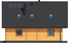Wysokość ścianki kolankowej: 0.9 m. Strop: drewniany. Pokrycie dachu: dachówka gontopodobna Gerard Corona. Ściany zewnętrzne: płazy drewniane + wełna mineralna + deska. Ściany wewnętrzne: płazy drewniane. Typ ogrzewania: kocioł gazowy lub kocioł na paliwo stałe. Instalacje dodatkowe: instalacja solarna.
