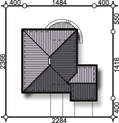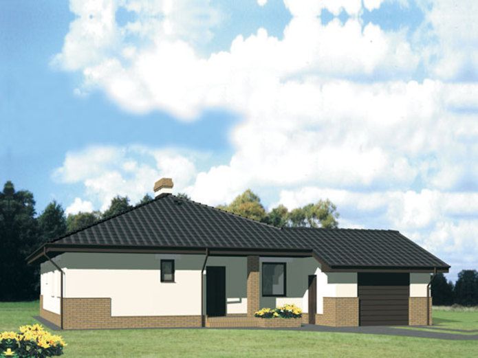 Graficzne opracowanie rzutów poglądowych widocznych na karcie projektu zostało wykonane przez Extradom.pl. Prezentowane przez Extradom.pl wizualizacje wykonane zostały przez autora projektu i należy poczytywać je jedynie za przykład i propozycję wykończenia, wizję architektoniczną autora projektu. Ostateczne wykończenie budynku może nastąpić na wiele sposobów. Szczegółowe rozwiązania zastosowane w oferowanej dokumentacji - w tym również ilość, lokalizacje i wygląd okien, drzwi, kominów - mogą w niewielkim stopniu różnić się od prezentowanej wizualizacji budynku.