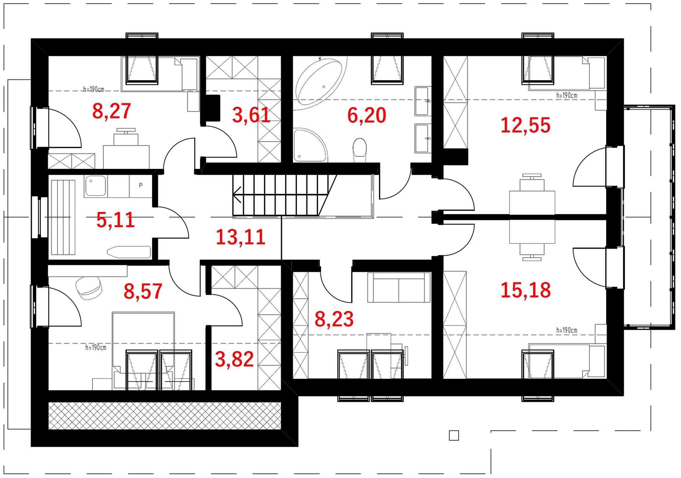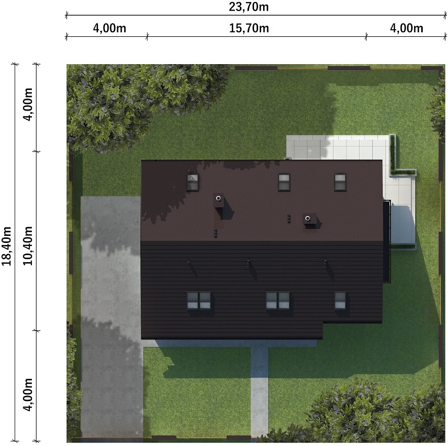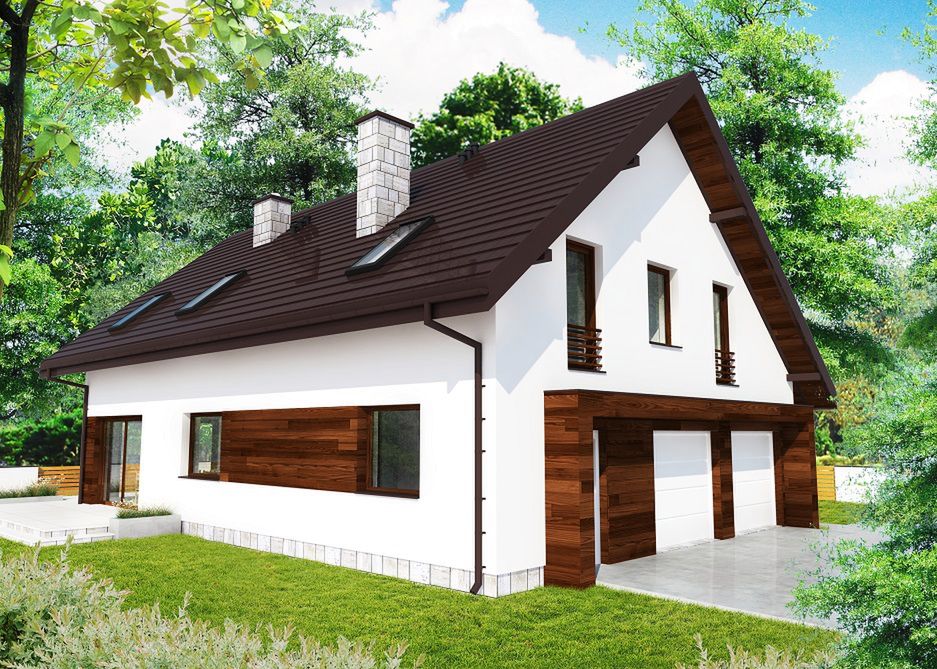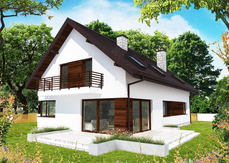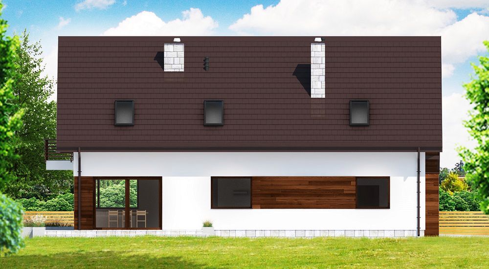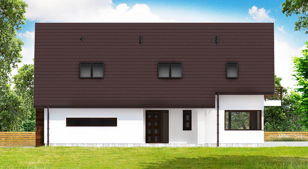 Graficzne opracowanie rzutów poglądowych widocznych na karcie projektu zostało wykonane przez Extradom.pl. Prezentowane przez Extradom.pl wizualizacje wykonane zostały przez autora projektu i należy poczytywać je jedynie za przykład i propozycję wykończenia, wizję architektoniczną autora projektu. Ostateczne wykończenie budynku może nastąpić na wiele sposobów. Szczegółowe rozwiązania zastosowane w oferowanej dokumentacji - w tym również ilość, lokalizacje i wygląd okien, drzwi, kominów - mogą w niewielkim stopniu różnić się od prezentowanej wizualizacji budynku.