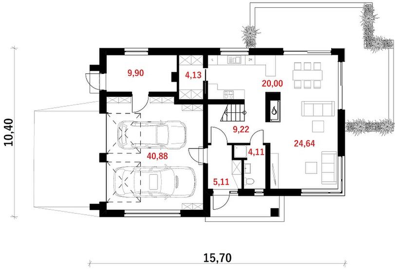 Ściany zewnętrzne: dwuwarstwowe, beton komórkowy 24cm + styropian 16cm. Strop nad parterem: płyta żelbetowa. Strop nad poddaszem: płyta żelbetowa. Dach: dwuspadowy.