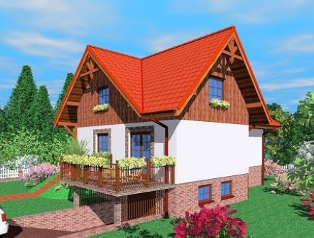 Graficzne opracowanie rzutów poglądowych widocznych na karcie projektu zostało wykonane przez Extradom.pl. Prezentowane przez Extradom.pl wizualizacje wykonane zostały przez autora projektu i należy poczytywać je jedynie za przykład i propozycję wykończenia, wizję architektoniczną autora projektu. Ostateczne wykończenie budynku może nastąpić na wiele sposobów. Szczegółowe rozwiązania zastosowane w oferowanej dokumentacji - w tym również ilość, lokalizacje i wygląd okien, drzwi, kominów - mogą w niewielkim stopniu różnić się od prezentowanej wizualizacji budynku.