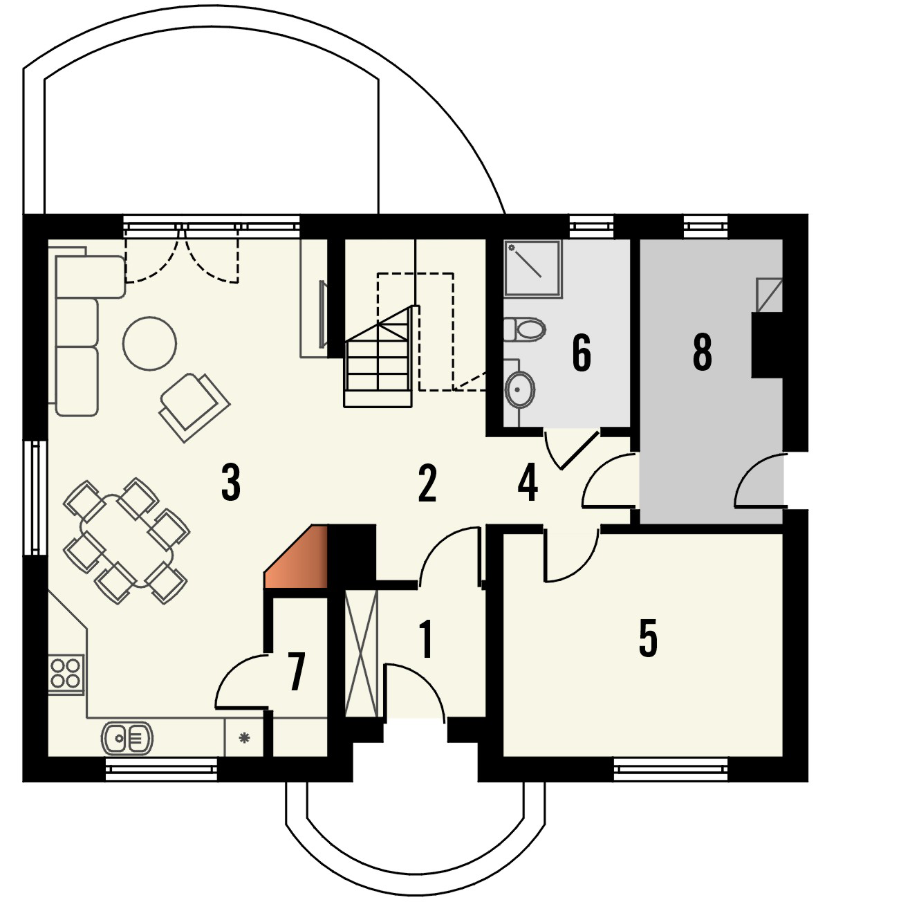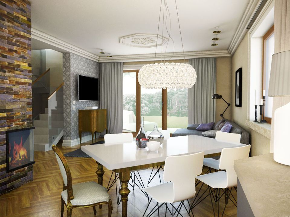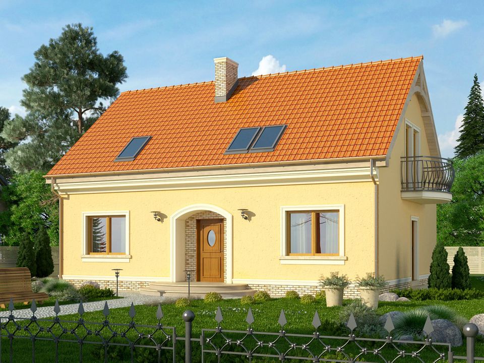 Graficzne opracowanie rzutów poglądowych widocznych na karcie projektu zostało wykonane przez Extradom.pl. Prezentowane przez Extradom.pl wizualizacje wykonane zostały przez autora projektu i należy poczytywać je jedynie za przykład i propozycję wykończenia, wizję architektoniczną autora projektu. Ostateczne wykończenie budynku może nastąpić na wiele sposobów. Szczegółowe rozwiązania zastosowane w oferowanej dokumentacji - w tym również ilość, lokalizacje i wygląd okien, drzwi, kominów - mogą w niewielkim stopniu różnić się od prezentowanej wizualizacji budynku.