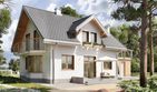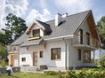 Graficzne opracowanie rzutów poglądowych widocznych na karcie projektu zostało wykonane przez Extradom.pl. Prezentowane przez Extradom.pl wizualizacje wykonane zostały przez autora projektu i należy poczytywać je jedynie za przykład i propozycję wykończenia, wizję architektoniczną autora projektu. Ostateczne wykończenie budynku może nastąpić na wiele sposobów. Szczegółowe rozwiązania zastosowane w oferowanej dokumentacji - w tym również ilość, lokalizacje i wygląd okien, drzwi, kominów - mogą w niewielkim stopniu różnić się od prezentowanej wizualizacji budynku.