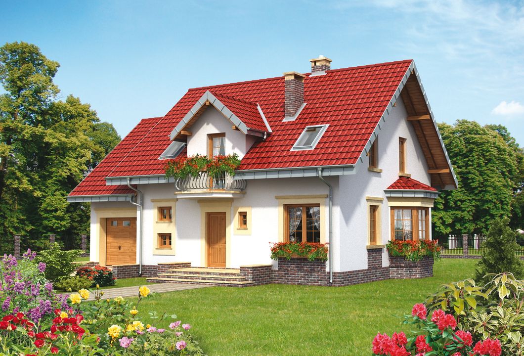 Graficzne opracowanie rzutów poglądowych widocznych na karcie projektu zostało wykonane przez Extradom.pl. Prezentowane przez Extradom.pl wizualizacje wykonane zostały przez autora projektu i należy poczytywać je jedynie za przykład i propozycję wykończenia, wizję architektoniczną autora projektu. Ostateczne wykończenie budynku może nastąpić na wiele sposobów. Szczegółowe rozwiązania zastosowane w oferowanej dokumentacji - w tym również ilość, lokalizacje i wygląd okien, drzwi, kominów - mogą w niewielkim stopniu różnić się od prezentowanej wizualizacji budynku.