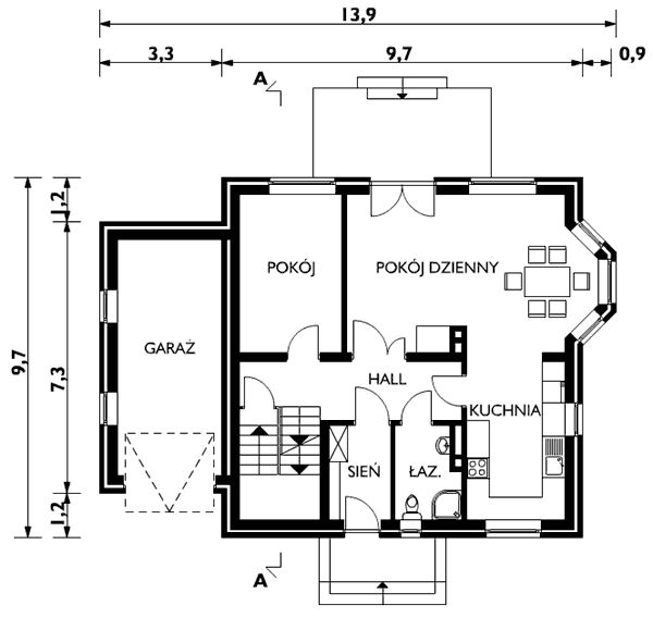 Graficzne opracowanie rzutów poglądowych widocznych na karcie projektu zostało wykonane przez Extradom.pl. Prezentowane przez Extradom.pl wizualizacje wykonane zostały przez autora projektu i należy poczytywać je jedynie za przykład i propozycję wykończenia, wizję architektoniczną autora projektu. Ostateczne wykończenie budynku może nastąpić na wiele sposobów. Szczegółowe rozwiązania zastosowane w oferowanej dokumentacji - w tym również ilość, lokalizacje i wygląd okien, drzwi, kominów - mogą w niewielkim stopniu różnić się od prezentowanej wizualizacji budynku.