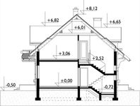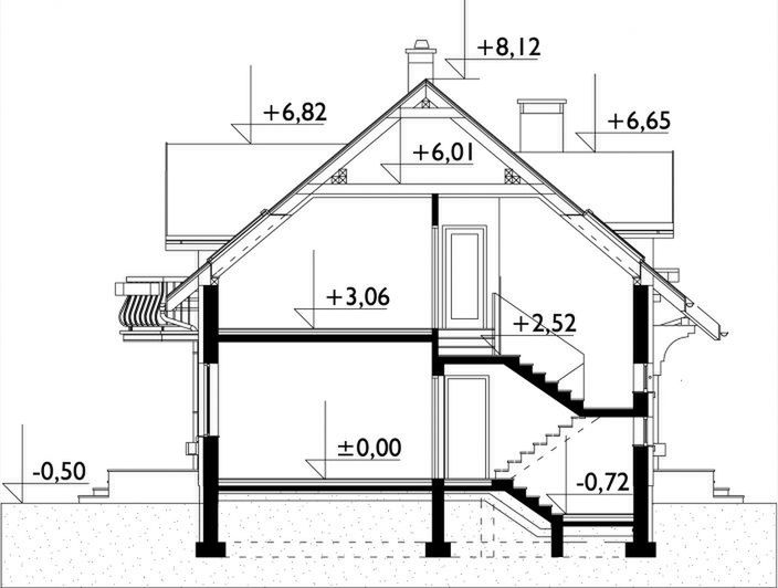 Technologia i konstrukcja: murowana – beton komórkowy. Ściany zewnętrzne: bloczki SOLBET Optimal gr. 30cm + docieplenie systemem ECOROCK MAX gr.10cm. Ściany wewnętrzne: bloczki SOLBET Optimal gr.24cm i 12cm. Strop: żelbetowy. Konstrukcja dachu: drewniana, jętkowa. Rodzaj schodów: żelbetowe. Typ ogrzewania: kocioł na gaz. Wentylacja: grawitacyjna. Aneks na paliwo stałe: dostępny (zapytaj o cenę). Pokrycie dachu: dachówka cementowa BRASS. Elewacja: tynk BOLIX na wełnie mineralnej.