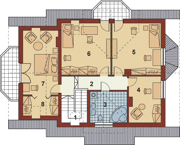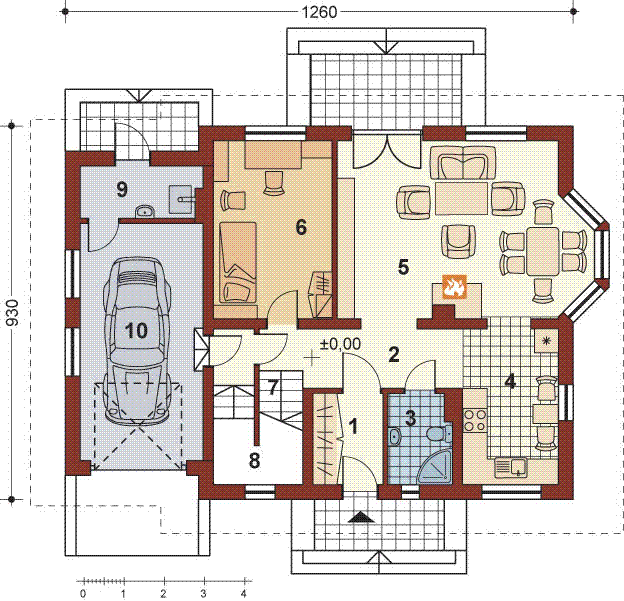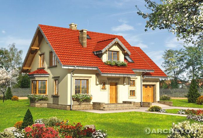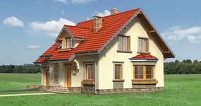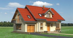 Graficzne opracowanie rzutów poglądowych widocznych na karcie projektu zostało wykonane przez Extradom.pl. Prezentowane przez Extradom.pl wizualizacje wykonane zostały przez autora projektu i należy poczytywać je jedynie za przykład i propozycję wykończenia, wizję architektoniczną autora projektu. Ostateczne wykończenie budynku może nastąpić na wiele sposobów. Szczegółowe rozwiązania zastosowane w oferowanej dokumentacji - w tym również ilość, lokalizacje i wygląd okien, drzwi, kominów - mogą w niewielkim stopniu różnić się od prezentowanej wizualizacji budynku.