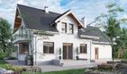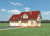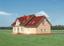 Graficzne opracowanie rzutów poglądowych widocznych na karcie projektu zostało wykonane przez Extradom.pl. Prezentowane przez Extradom.pl wizualizacje wykonane zostały przez autora projektu i należy poczytywać je jedynie za przykład i propozycję wykończenia, wizję architektoniczną autora projektu. Ostateczne wykończenie budynku może nastąpić na wiele sposobów. Szczegółowe rozwiązania zastosowane w oferowanej dokumentacji - w tym również ilość, lokalizacje i wygląd okien, drzwi, kominów - mogą w niewielkim stopniu różnić się od prezentowanej wizualizacji budynku.