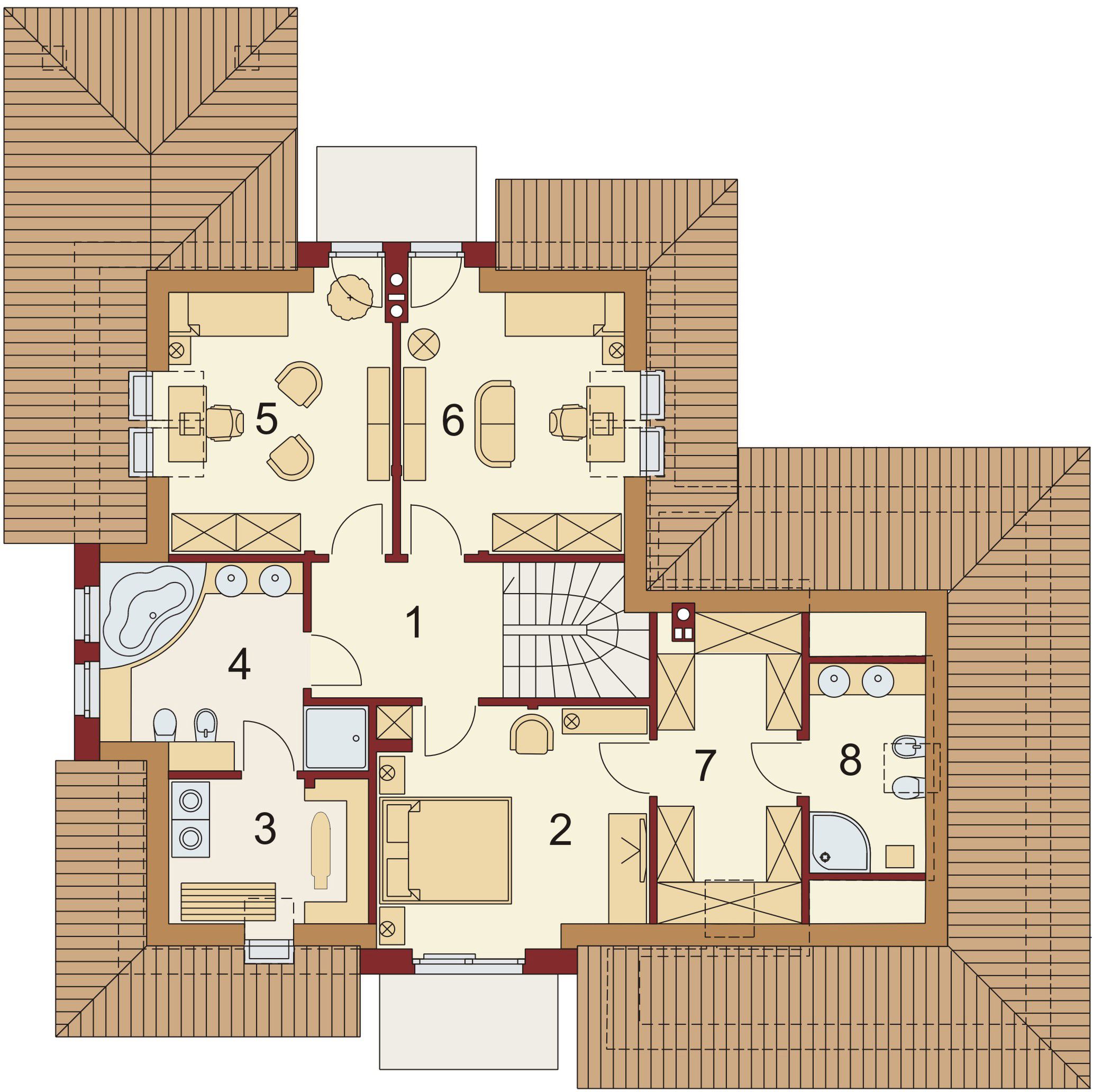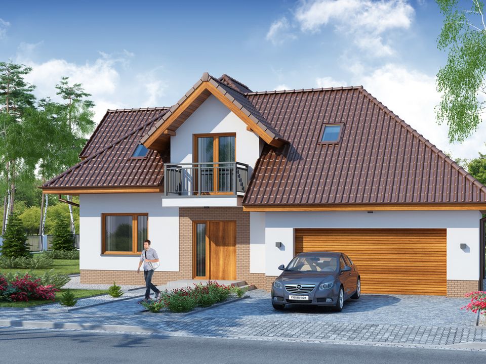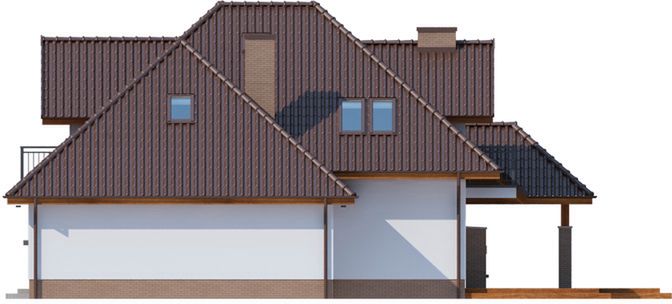 Graficzne opracowanie rzutów poglądowych widocznych na karcie projektu zostało wykonane przez Extradom.pl. Prezentowane przez Extradom.pl wizualizacje wykonane zostały przez autora projektu i należy poczytywać je jedynie za przykład i propozycję wykończenia, wizję architektoniczną autora projektu. Ostateczne wykończenie budynku może nastąpić na wiele sposobów. Szczegółowe rozwiązania zastosowane w oferowanej dokumentacji - w tym również ilość, lokalizacje i wygląd okien, drzwi, kominów - mogą w niewielkim stopniu różnić się od prezentowanej wizualizacji budynku.