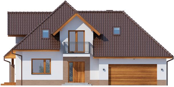 Fundamenty: bezpośrednie, na ławach i stopach fundamentowych. Ściany zewnętrzne: bloczki z bet. komórkowego (odm. 600) - 24 cm + styropian TERMO ORGANIKA typ Fasada 16 cm. Ściany wewnętrzne: bloczki z bet. komórkowego (odm. 600) - 24 cm (działowe - 12 cm) + działowe z płyty G-K na ruszcie (poddasze). Strop: gęstożebrowy Teriva I (w części Teriva I bis).. Elewacje: tynk - System Platinum firmy TERMO ORGANIKA, płytki klinkierowe. Pokrycie dachu: dachówka ceramiczna. Konstrukcja dachu: drewniana o układzie konstrukcyjnym: - krokwiowym bezrosporowym (nad częścią mieszkalną) - jętkowym (nad garażem. Schody wewnętrzne: drewniane wg indywidualnego projektu. Ogrzewanie: kocioł gazowy kondensacyjny lub kocioł na paliwo stałe (biomasa/ekogroszek) dodatkowe źródło ciepła - kominek z płaszczem wodnym