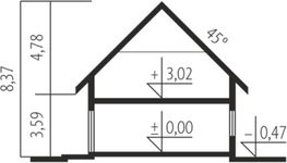 Graficzne opracowanie rzutów poglądowych widocznych na karcie projektu zostało wykonane przez Extradom.pl. Prezentowane przez Extradom.pl wizualizacje wykonane zostały przez autora projektu i należy poczytywać je jedynie za przykład i propozycję wykończenia, wizję architektoniczną autora projektu. Ostateczne wykończenie budynku może nastąpić na wiele sposobów. Szczegółowe rozwiązania zastosowane w oferowanej dokumentacji - w tym również ilość, lokalizacje i wygląd okien, drzwi, kominów - mogą w niewielkim stopniu różnić się od prezentowanej wizualizacji budynku.