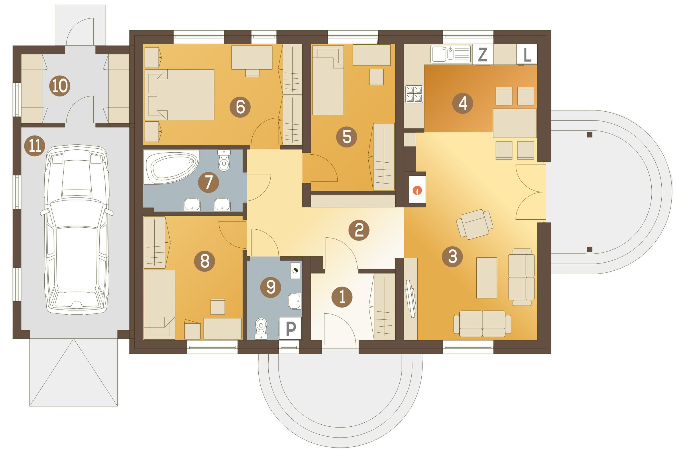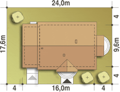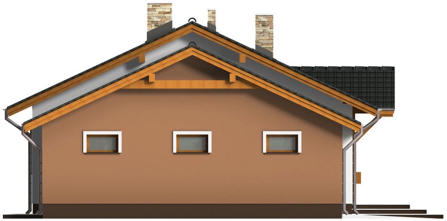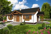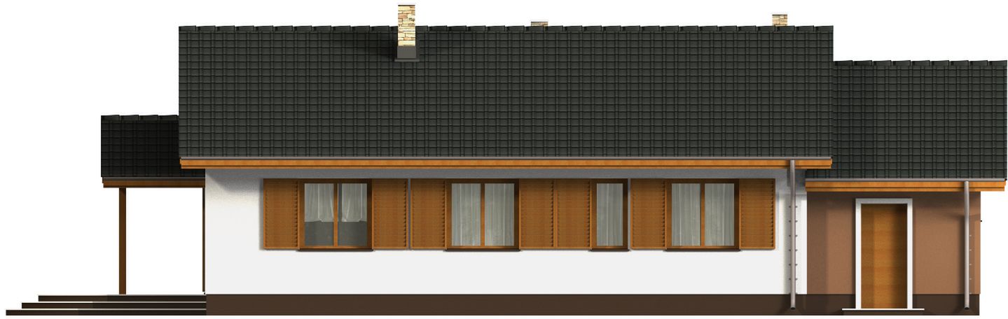 Graficzne opracowanie rzutów poglądowych widocznych na karcie projektu zostało wykonane przez Extradom.pl. Prezentowane przez Extradom.pl wizualizacje wykonane zostały przez autora projektu i należy poczytywać je jedynie za przykład i propozycję wykończenia, wizję architektoniczną autora projektu. Ostateczne wykończenie budynku może nastąpić na wiele sposobów. Szczegółowe rozwiązania zastosowane w oferowanej dokumentacji - w tym również ilość, lokalizacje i wygląd okien, drzwi, kominów - mogą w niewielkim stopniu różnić się od prezentowanej wizualizacji budynku.