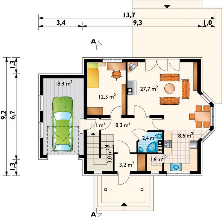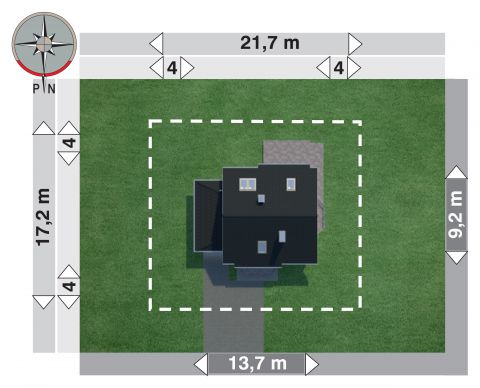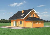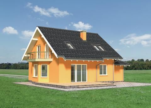 Graficzne opracowanie rzutów poglądowych widocznych na karcie projektu zostało wykonane przez Extradom.pl. Prezentowane przez Extradom.pl wizualizacje wykonane zostały przez autora projektu i należy poczytywać je jedynie za przykład i propozycję wykończenia, wizję architektoniczną autora projektu. Ostateczne wykończenie budynku może nastąpić na wiele sposobów. Szczegółowe rozwiązania zastosowane w oferowanej dokumentacji - w tym również ilość, lokalizacje i wygląd okien, drzwi, kominów - mogą w niewielkim stopniu różnić się od prezentowanej wizualizacji budynku.