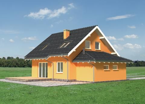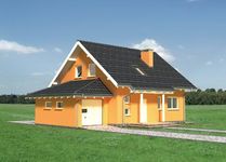 Technologia i konstrukcja: murowana – beton komórkowy. Ściany zewnętrzne: bloczki z betonu komórkowego YTONG , gr.24cm + 12 cm wełna min. Rocwool Ecorock. Ściany wewnętrzne: bloczki silikatowe SILKA. Strop: żelbetowy. Konstrukcja dachu: drewniana, jętkowa. Rodzaj schodów: żelbetowe. Typ ogrzewania: kocioł na gaz. Aneks na paliwo stałe: dostępny (zapytaj o cenę). Pokrycie dachu: dachówka ceramiczna. Elewacja: tynk cementowo-wapienny.