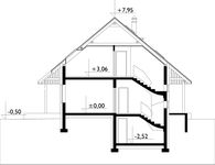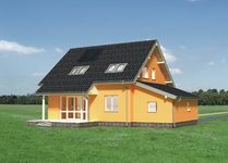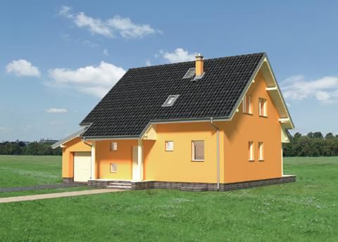 Graficzne opracowanie rzutów poglądowych widocznych na karcie projektu zostało wykonane przez Extradom.pl. Prezentowane przez Extradom.pl wizualizacje wykonane zostały przez autora projektu i należy poczytywać je jedynie za przykład i propozycję wykończenia, wizję architektoniczną autora projektu. Ostateczne wykończenie budynku może nastąpić na wiele sposobów. Szczegółowe rozwiązania zastosowane w oferowanej dokumentacji - w tym również ilość, lokalizacje i wygląd okien, drzwi, kominów - mogą w niewielkim stopniu różnić się od prezentowanej wizualizacji budynku.