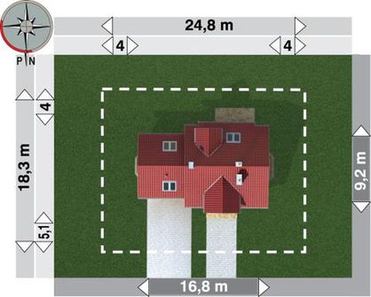 Graficzne opracowanie rzutów poglądowych widocznych na karcie projektu zostało wykonane przez Extradom.pl. Prezentowane przez Extradom.pl wizualizacje wykonane zostały przez autora projektu i należy poczytywać je jedynie za przykład i propozycję wykończenia, wizję architektoniczną autora projektu. Ostateczne wykończenie budynku może nastąpić na wiele sposobów. Szczegółowe rozwiązania zastosowane w oferowanej dokumentacji - w tym również ilość, lokalizacje i wygląd okien, drzwi, kominów - mogą w niewielkim stopniu różnić się od prezentowanej wizualizacji budynku.