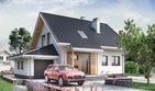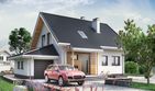 Graficzne opracowanie rzutów poglądowych widocznych na karcie projektu zostało wykonane przez Extradom.pl. Prezentowane przez Extradom.pl wizualizacje wykonane zostały przez autora projektu i należy poczytywać je jedynie za przykład i propozycję wykończenia, wizję architektoniczną autora projektu. Ostateczne wykończenie budynku może nastąpić na wiele sposobów. Szczegółowe rozwiązania zastosowane w oferowanej dokumentacji - w tym również ilość, lokalizacje i wygląd okien, drzwi, kominów - mogą w niewielkim stopniu różnić się od prezentowanej wizualizacji budynku.