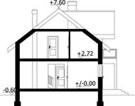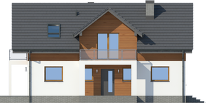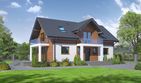 Graficzne opracowanie rzutów poglądowych widocznych na karcie projektu zostało wykonane przez Extradom.pl. Prezentowane przez Extradom.pl wizualizacje wykonane zostały przez autora projektu i należy poczytywać je jedynie za przykład i propozycję wykończenia, wizję architektoniczną autora projektu. Ostateczne wykończenie budynku może nastąpić na wiele sposobów. Szczegółowe rozwiązania zastosowane w oferowanej dokumentacji - w tym również ilość, lokalizacje i wygląd okien, drzwi, kominów - mogą w niewielkim stopniu różnić się od prezentowanej wizualizacji budynku.