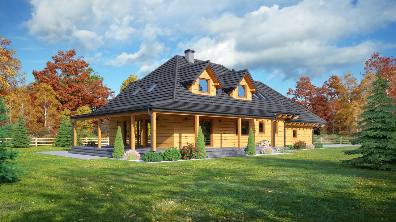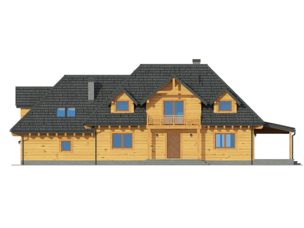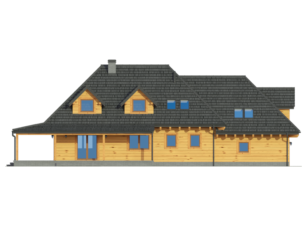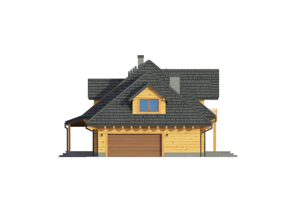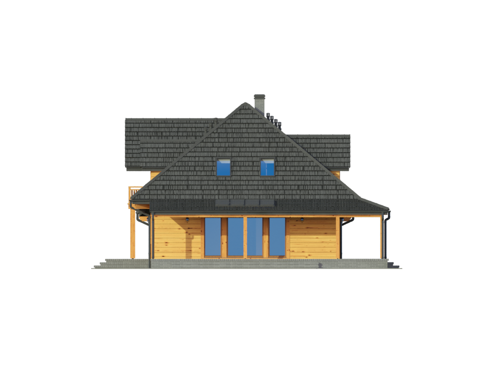 Graficzne opracowanie rzutów poglądowych widocznych na karcie projektu zostało wykonane przez Extradom.pl. Prezentowane przez Extradom.pl wizualizacje wykonane zostały przez autora projektu i należy poczytywać je jedynie za przykład i propozycję wykończenia, wizję architektoniczną autora projektu. Ostateczne wykończenie budynku może nastąpić na wiele sposobów. Szczegółowe rozwiązania zastosowane w oferowanej dokumentacji - w tym również ilość, lokalizacje i wygląd okien, drzwi, kominów - mogą w niewielkim stopniu różnić się od prezentowanej wizualizacji budynku.