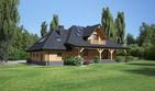 Graficzne opracowanie rzutów poglądowych widocznych na karcie projektu zostało wykonane przez Extradom.pl. Prezentowane przez Extradom.pl wizualizacje wykonane zostały przez autora projektu i należy poczytywać je jedynie za przykład i propozycję wykończenia, wizję architektoniczną autora projektu. Ostateczne wykończenie budynku może nastąpić na wiele sposobów. Szczegółowe rozwiązania zastosowane w oferowanej dokumentacji - w tym również ilość, lokalizacje i wygląd okien, drzwi, kominów - mogą w niewielkim stopniu różnić się od prezentowanej wizualizacji budynku.