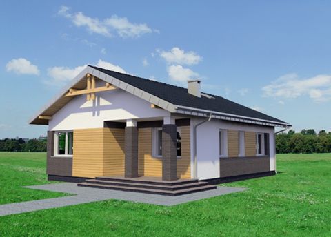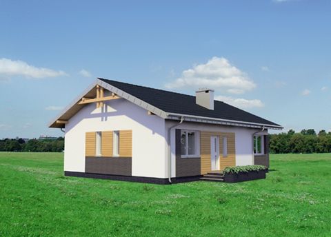 Technologia i konstrukcja: murowana – ceramika. Ściany zewnętrzne: pustaki ceramiczne TERMOton ZCB Owczary gr. 25 cm + docieplenie (wełna lub styropian) gr. 15 cm. Ściany wewnętrzne: pustaki ceramiczne TERMOton ZCB Owczary gr. 25 cm i 11,5 cm. Strop: DENNERT. Konstrukcja dachu: drewniana, jętkowa. Rodzaj schodów: brak. Typ ogrzewania: kocioł na gaz. Aneks na paliwo stałe: na zamówienie. Pokrycie dachu: dachówka betonowa lub ceramiczna BRAAS. Elewacja: tynk firmy SICHER BAUTECHNIK, częściowo płytka klinkierowa firmy CERRAD.