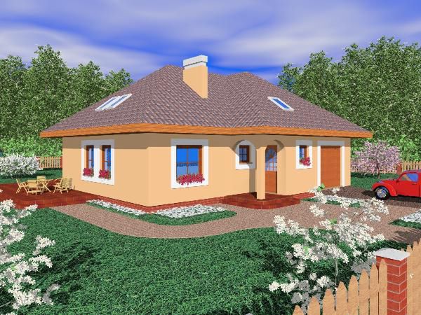 Graficzne opracowanie rzutów poglądowych widocznych na karcie projektu zostało wykonane przez Extradom.pl. Prezentowane przez Extradom.pl wizualizacje wykonane zostały przez autora projektu i należy poczytywać je jedynie za przykład i propozycję wykończenia, wizję architektoniczną autora projektu. Ostateczne wykończenie budynku może nastąpić na wiele sposobów. Szczegółowe rozwiązania zastosowane w oferowanej dokumentacji - w tym również ilość, lokalizacje i wygląd okien, drzwi, kominów - mogą w niewielkim stopniu różnić się od prezentowanej wizualizacji budynku.