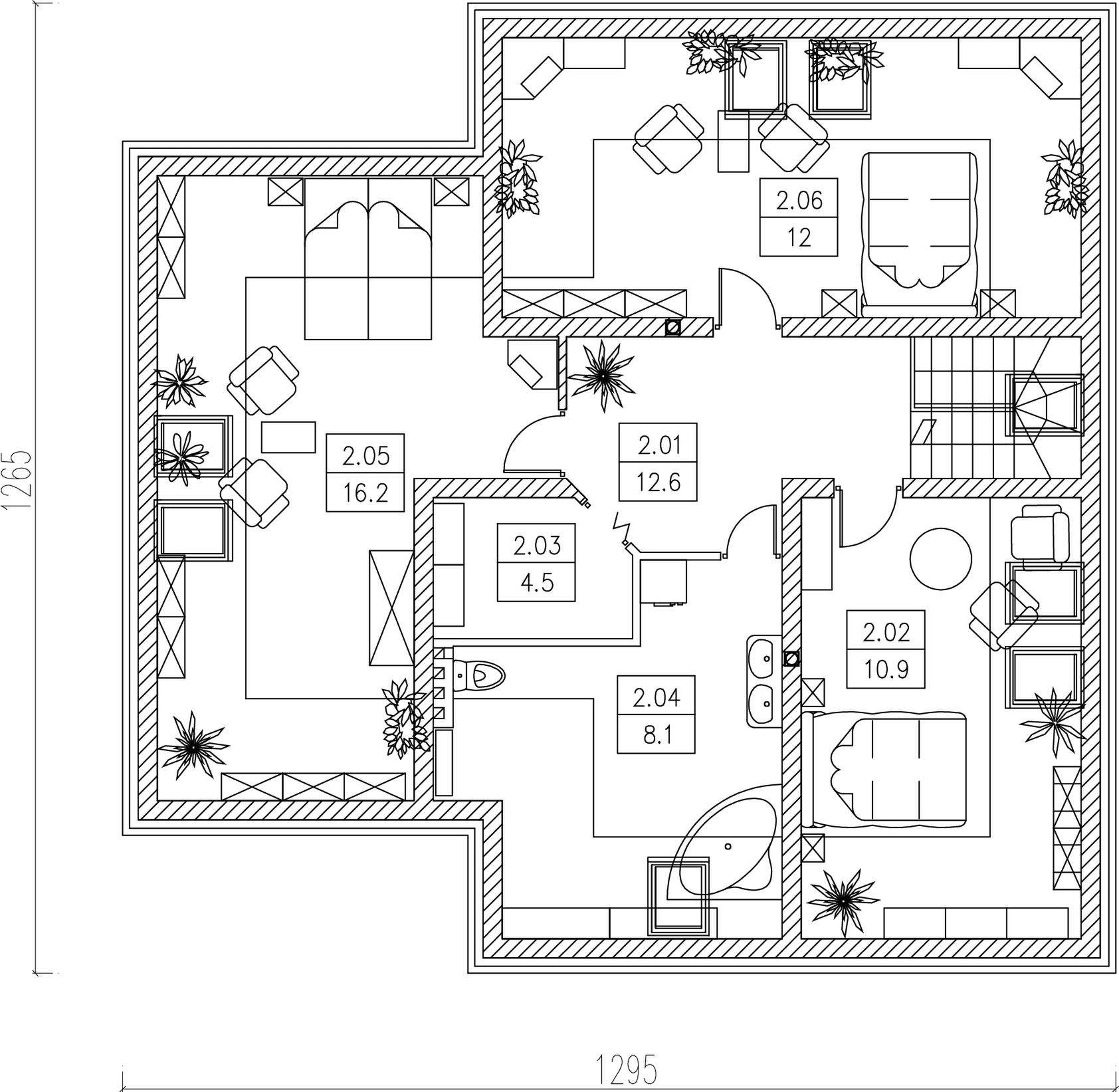 Ściany zewnętrzne trójwarstwowe z pustaków ceramicznych z wewnętrznym ociepleniem, ściany wewnętrzne nośne z pustaków ceramicznych, ścianki działowe z cegły dziurawki lub płyt GK, strop żelbetowy monolityczny, więźba dachowa drewniana, kryta dachówką cementową lub ceramiczną. Możliwe zastosowanie ogrzewania gazowego lub olejowego.