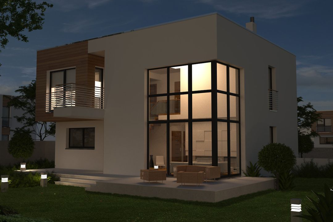Graficzne opracowanie rzutów poglądowych widocznych na karcie projektu zostało wykonane przez Extradom.pl. Prezentowane przez Extradom.pl wizualizacje wykonane zostały przez autora projektu i należy poczytywać je jedynie za przykład i propozycję wykończenia, wizję architektoniczną autora projektu. Ostateczne wykończenie budynku może nastąpić na wiele sposobów. Szczegółowe rozwiązania zastosowane w oferowanej dokumentacji - w tym również ilość, lokalizacje i wygląd okien, drzwi, kominów - mogą w niewielkim stopniu różnić się od prezentowanej wizualizacji budynku.
