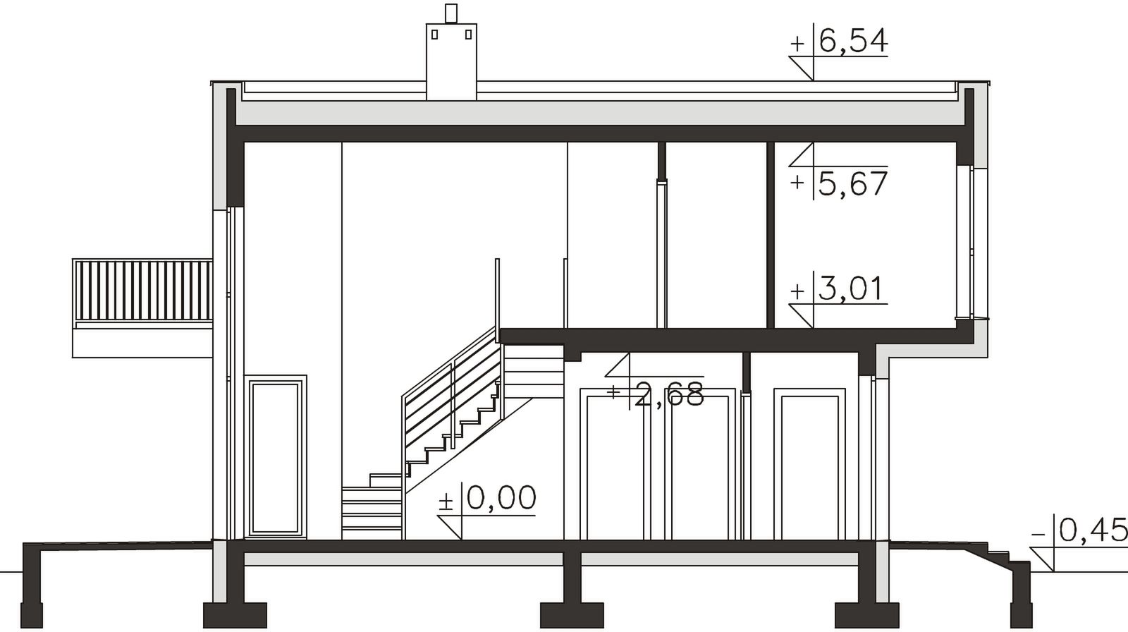 Fundamenty - rozwiązanie o podwyższonej izolacji termicznej. Ściany zewnętrzne - Bloczek silikatowy 24 cm + styropian 20 cm. Dach - stropodach gęstożebrowy. Ogrzewanie - c.o. grzejnikowe + c.w.u. - kocioł gazowy. Wentylacja - rekuperacja.