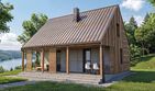 Graficzne opracowanie rzutów poglądowych widocznych na karcie projektu zostało wykonane przez Extradom.pl. Prezentowane przez Extradom.pl wizualizacje wykonane zostały przez autora projektu i należy poczytywać je jedynie za przykład i propozycję wykończenia, wizję architektoniczną autora projektu. Ostateczne wykończenie budynku może nastąpić na wiele sposobów. Szczegółowe rozwiązania zastosowane w oferowanej dokumentacji - w tym również ilość, lokalizacje i wygląd okien, drzwi, kominów - mogą w niewielkim stopniu różnić się od prezentowanej wizualizacji budynku.