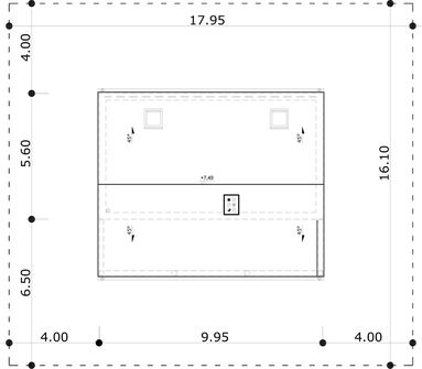 Graficzne opracowanie rzutów poglądowych widocznych na karcie projektu zostało wykonane przez Extradom.pl. Prezentowane przez Extradom.pl wizualizacje wykonane zostały przez autora projektu i należy poczytywać je jedynie za przykład i propozycję wykończenia, wizję architektoniczną autora projektu. Ostateczne wykończenie budynku może nastąpić na wiele sposobów. Szczegółowe rozwiązania zastosowane w oferowanej dokumentacji - w tym również ilość, lokalizacje i wygląd okien, drzwi, kominów - mogą w niewielkim stopniu różnić się od prezentowanej wizualizacji budynku.
