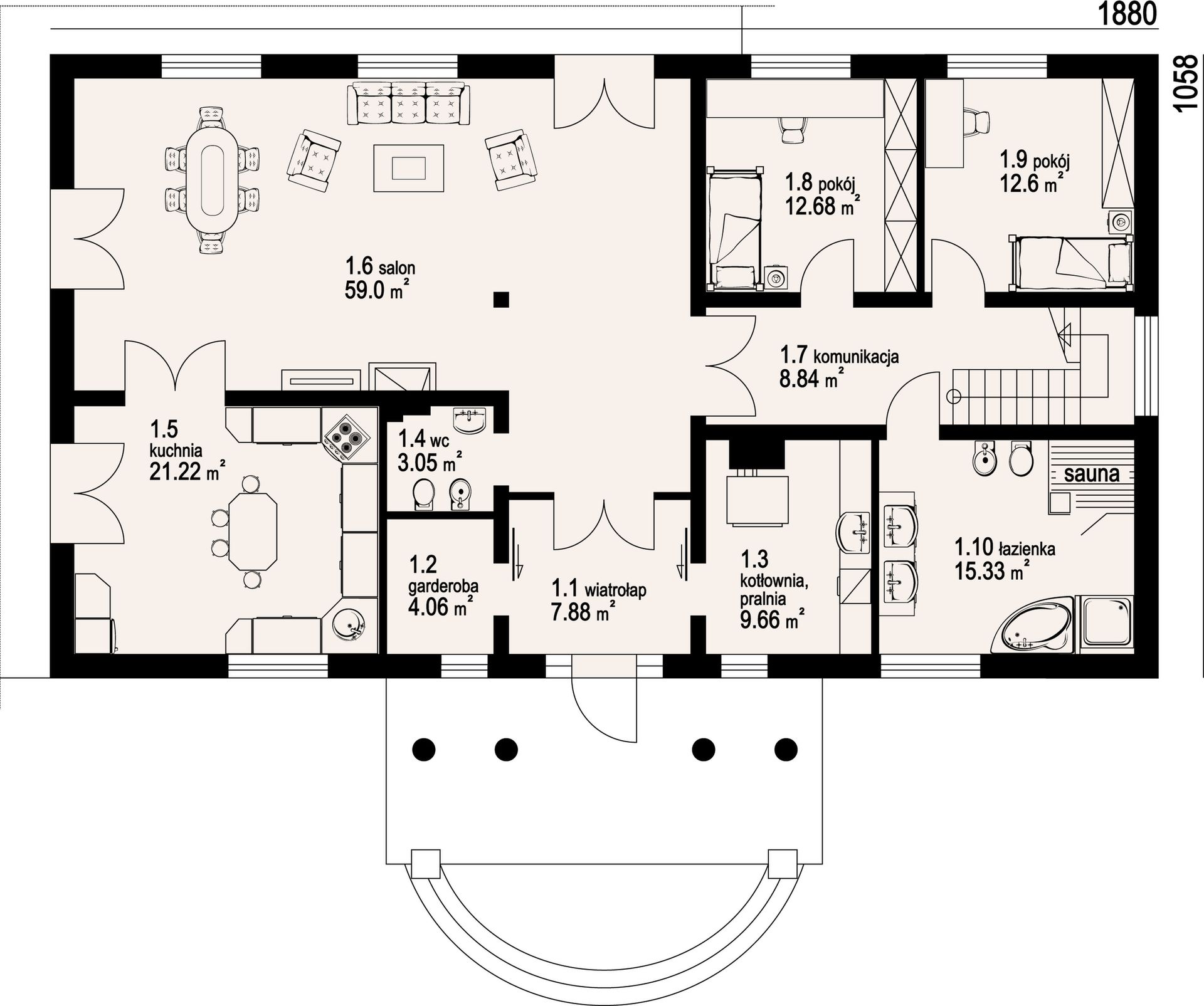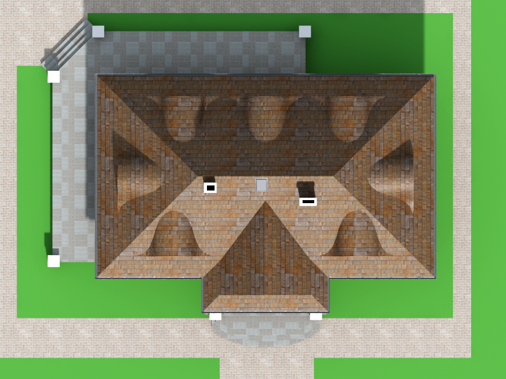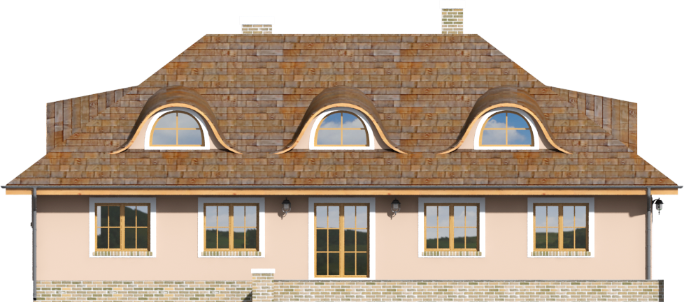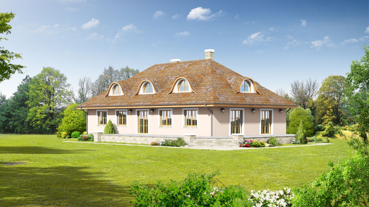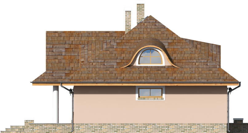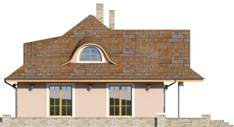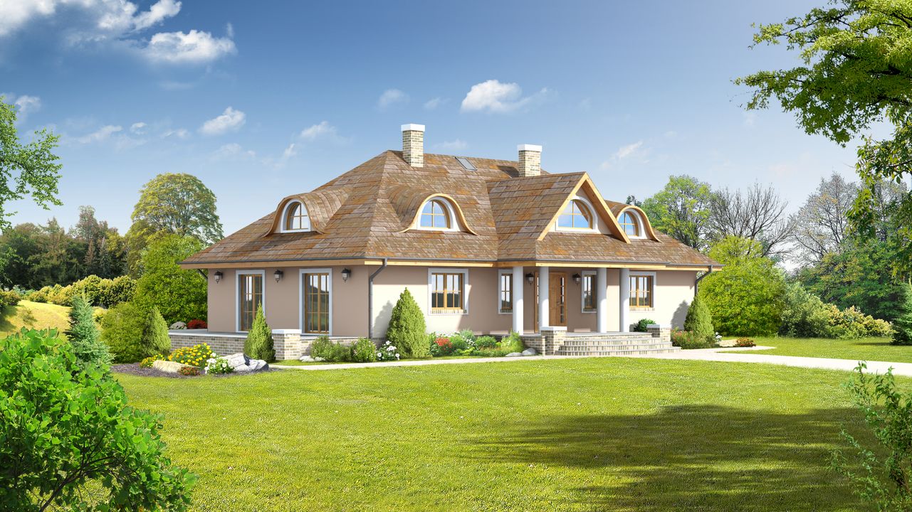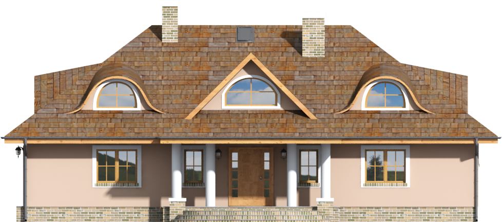 Graficzne opracowanie rzutów poglądowych widocznych na karcie projektu zostało wykonane przez Extradom.pl. Prezentowane przez Extradom.pl wizualizacje wykonane zostały przez autora projektu i należy poczytywać je jedynie za przykład i propozycję wykończenia, wizję architektoniczną autora projektu. Ostateczne wykończenie budynku może nastąpić na wiele sposobów. Szczegółowe rozwiązania zastosowane w oferowanej dokumentacji - w tym również ilość, lokalizacje i wygląd okien, drzwi, kominów - mogą w niewielkim stopniu różnić się od prezentowanej wizualizacji budynku.
