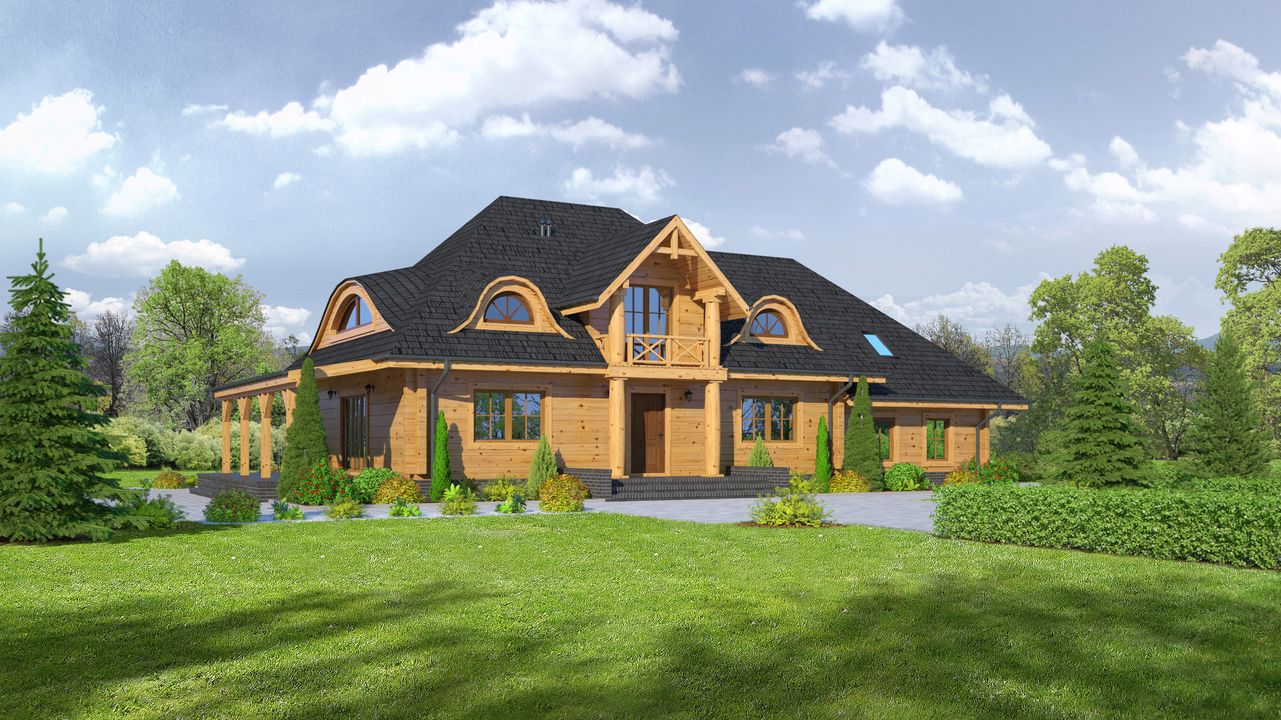 Graficzne opracowanie rzutów poglądowych widocznych na karcie projektu zostało wykonane przez Extradom.pl. Prezentowane przez Extradom.pl wizualizacje wykonane zostały przez autora projektu i należy poczytywać je jedynie za przykład i propozycję wykończenia, wizję architektoniczną autora projektu. Ostateczne wykończenie budynku może nastąpić na wiele sposobów. Szczegółowe rozwiązania zastosowane w oferowanej dokumentacji - w tym również ilość, lokalizacje i wygląd okien, drzwi, kominów - mogą w niewielkim stopniu różnić się od prezentowanej wizualizacji budynku.