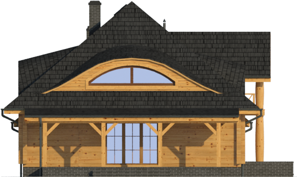 Wysokość ścianki kolankowej: 0.64 m. Strop: drewniany. Pokrycie dachu: dachówka gontopodobna Gerard Corona. Ściany zewnętrzne: płazy drewniane + wełna mineralna + deska. Ściany wewnętrzne: płazy drewniane. Typ ogrzewania: kocioł gazowy lub kocioł na paliwo stałe.